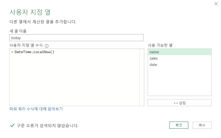 ★(note) Table.AddColumn의 첫번째 인수는 새로 생기는 Column을 어디에 둘 것인지를 정한다. (아래그림)