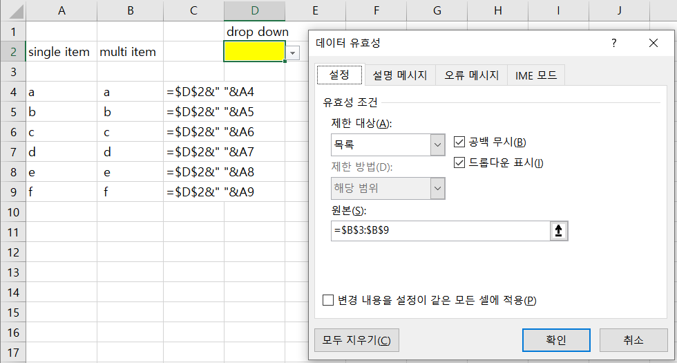 03 VBA 없이 Drop down에서 여러항목 선택하기