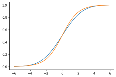표준정규분포 누적함수**와 거의 유사한데 수식은 간단하다.