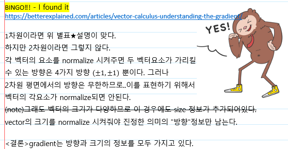 인터넷에 찾아본 결론은 f'(x) 또는 Gradient가 "방향"이라고 해석하면된다는 건데, 사실 Gradient는 방향뿐만 아니라 크기도 가지고 있다.