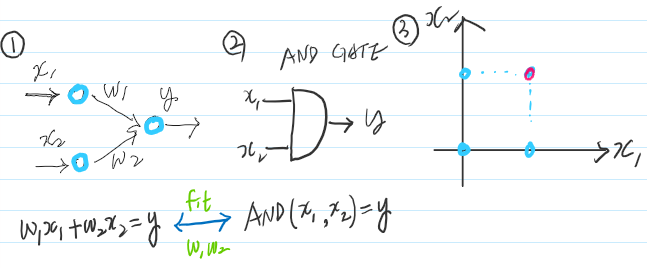 - AND, OR 등 논리게이트에 적용해보자(simple example)