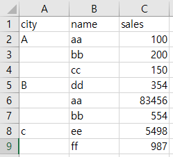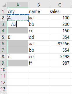 빈 셀이 있을 경우 위의 값을 채워넣거나 fill down